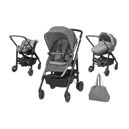 Composé de la poussette Loola 3, de la nacelle Compacte et du cosi Streety Fix, le trio Loola Excel vous offre une solution complète et évolutive, de la naissance de Bébé à ses 3 ans et demi.
