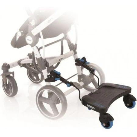 Nouvelle planche à roulettes pour transporter un deuxième enfant, adaptable aux poussettes avec largeur du châssis de 32,5 à 43 cm et le diamètre de tube de 17 à 27 mm.