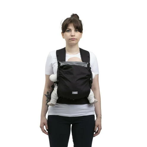 – La capuche présente une double configuration : lorsqu’elle est abaissée, elle apporte un soutien supplémentaire au cou du bébé, lorsqu’elle est relevée, elle offre intimité et protection solaire pendant les siestes ou les journées ensoleillées.
