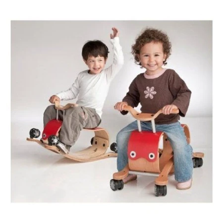 Porteur / pousseur innovant : il se transforme très facilement de jouet à bascule en jouet à pousser ou en trotteur.