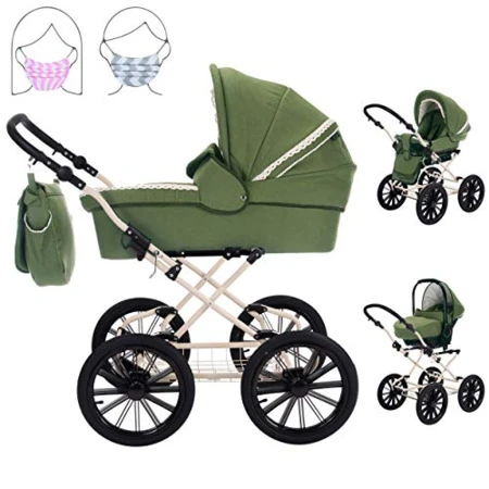 Friedrich Hugo© Natureline : enfin une poussette capable de satisfaire vos désirs de naturel et de durabilité écologique. La Natureline ne ressemble en rien aux poussettes composées de matières plastiques bon marché, d’origine inconnue. Natureline de Friedrich Hugo© enveloppe votre bébé de coton et de lin naturel bio. Sans colorants chimiques ni agents blanchissants généralement présents dans les poussettes. Les matières utilisées sont à base d’ingrédients naturels sous production contrôlée. Contenu de la livraison Friedrich Hugo© Natureline : cadre croisé, châssis en acier avec système Twist disponible en couleur crème ou chromé, nacelle avec protection contre le soleil et couvre-pieds, intérieur 100% coton bio, matelas en fibres de noix de coco, siège sport avec protection contre le soleil et couvre-pieds en coton et lin bio, harnais de sécurité à 5 points, siège auto CEE 44/04 rembourré et réducteur de siège en coton et en lin bio, sac à langer, capote de pluie, moustiquaire, adaptateur pour siège auto. L’ensemble 3 en 1 Friedrich Hugo© Natureline est livré avec 3 accessoires différents, adaptés au châssis. Chaque accessoire peut se monter dans le sens de la marche et en sens inverse. Grâce à ses roues de 14″, Natureline est un compagnon idéal tout terrain. La nacelle bébé est utilisable dès la naissance. Le siège auto s’utilise pour les déplacements en voiture. La certification CEE R 44/04 assure la plus grande sécurité, harnais rembourré et réducteur de siège. Le hamac peut être utilisé à partir du 6ème mois. Friedrich hugo© natureline est la meilleure poussette : sécurité certifiée EN 1888:2004 et matériaux bio, confort sensationnel. Les accessoires se montent et se démontent facilement grâce au système Twist, peu encombrant dans la voiture grâce aux roues amovibles, facile à transporter. Fabricant de marque avec une longue expérience, réglage de la taille sur la poignée pour les deux parents, conçu en Allemagne. – – – – –