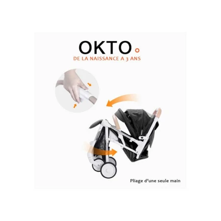 La poussette canne Okto est une poussette citadine idéale pour la vie quotidienne homologuée dès la naissance jusqu’à 3,5 ans. Légère et très maniable cette poussette vous garantit une glisse et un amorti incomparable.