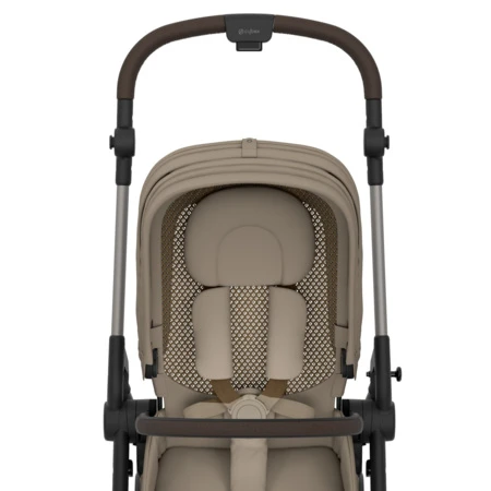 Ses finitions haut de gamme comme le guidon en simili cuir viennent parfaire son style contemporain chic reconnaissable des poussettes CYBEX.
