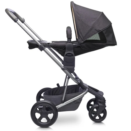 Grâce à ces pneus pleins, son système de roulements et ses suspensions, la poussette est facilement maniable et la conduite est souple. De plus, elle possède un large panier (sous le siège) et des crochets (sous la poignée) pour transporter tout ce dont vous avez besoin.