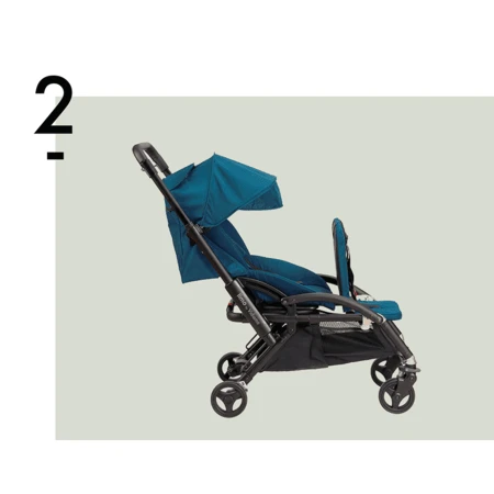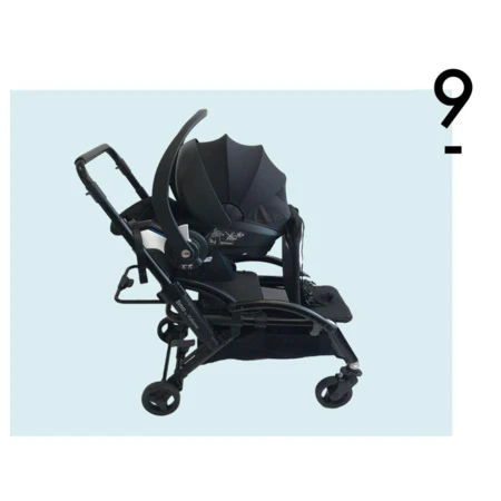 2) Sous l’assise de la poussette se cache un strapontin que vous pouvez dĂ©plier facilement pour accueillir un 2ème enfant.