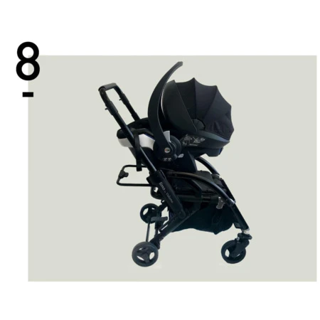 8) Un siège auto peut être installé sur la Limo avec l’utilisation des adaptateurs siège auto compatibles avec les sièges des marques Cybex, BeSafe, Nuna, Joie et Kiddy.