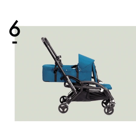 7) Vous pouvez aussi rajouter le cabas devant le couffin, pour faire ses courses avec son nouveau né sans avoir à sacrifier l’espace de rangement